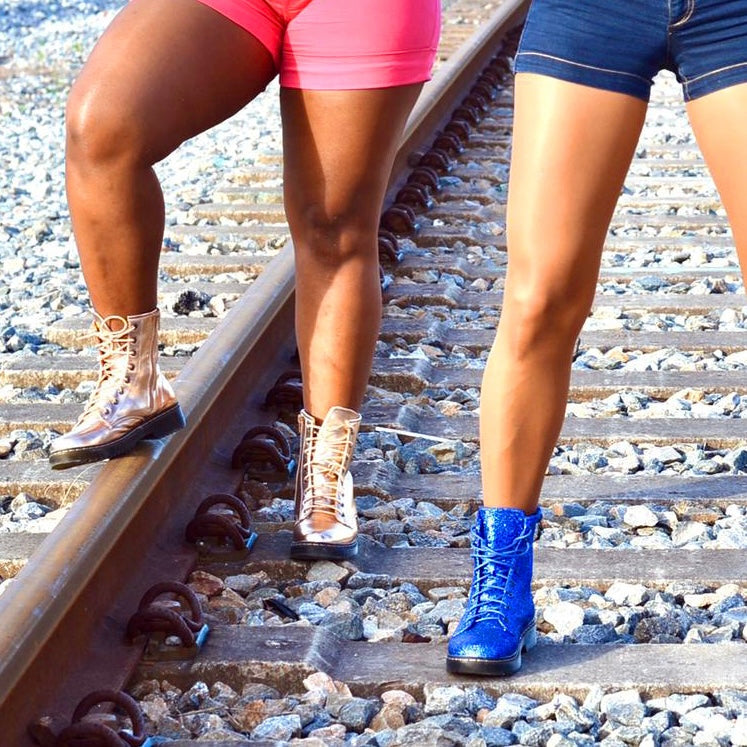 Step out with conviction in these super comfy (no breaking-in necessary), combat boot style, made for dancing, ok we think you can be a little bad-girl in them too.
