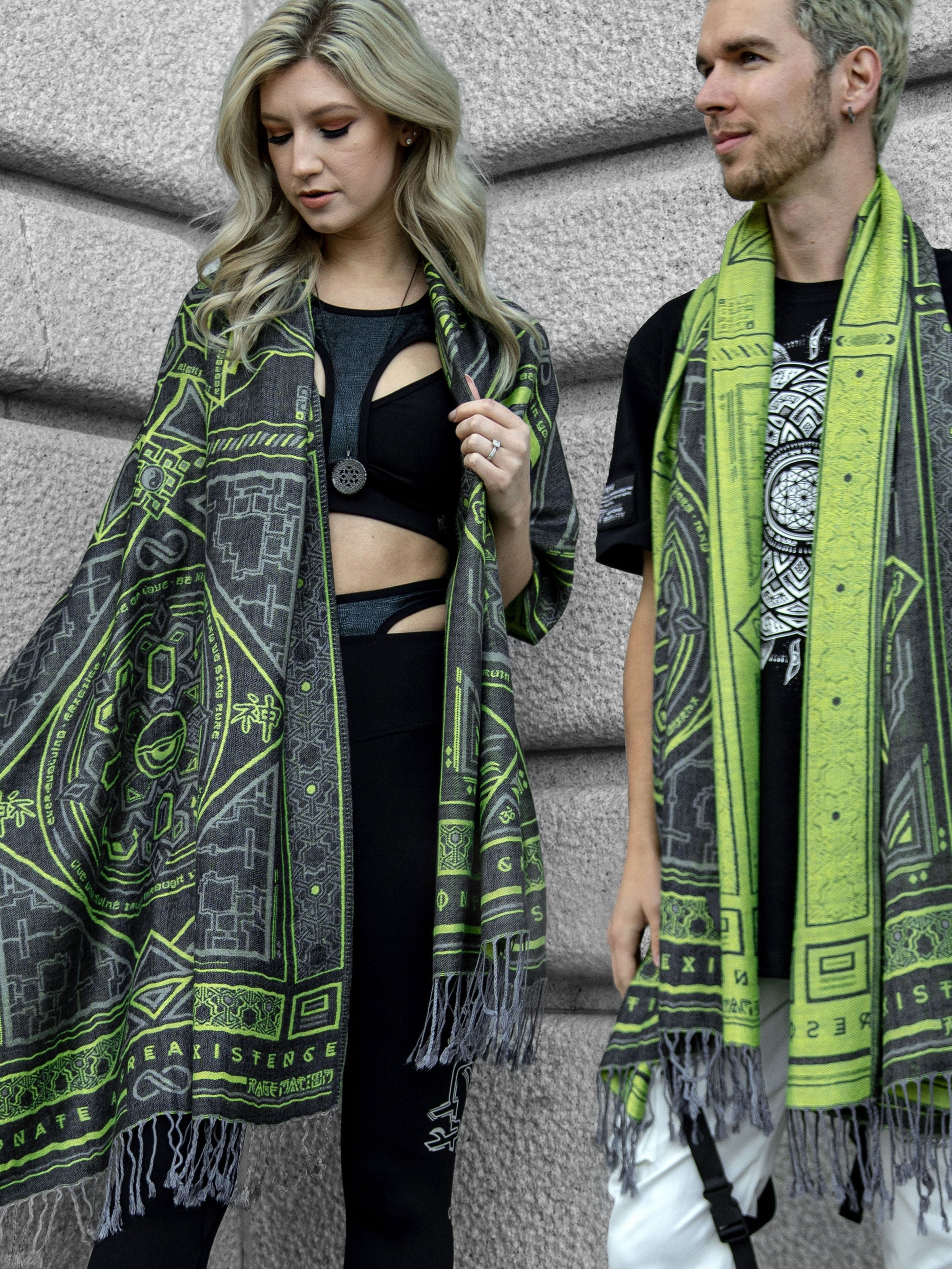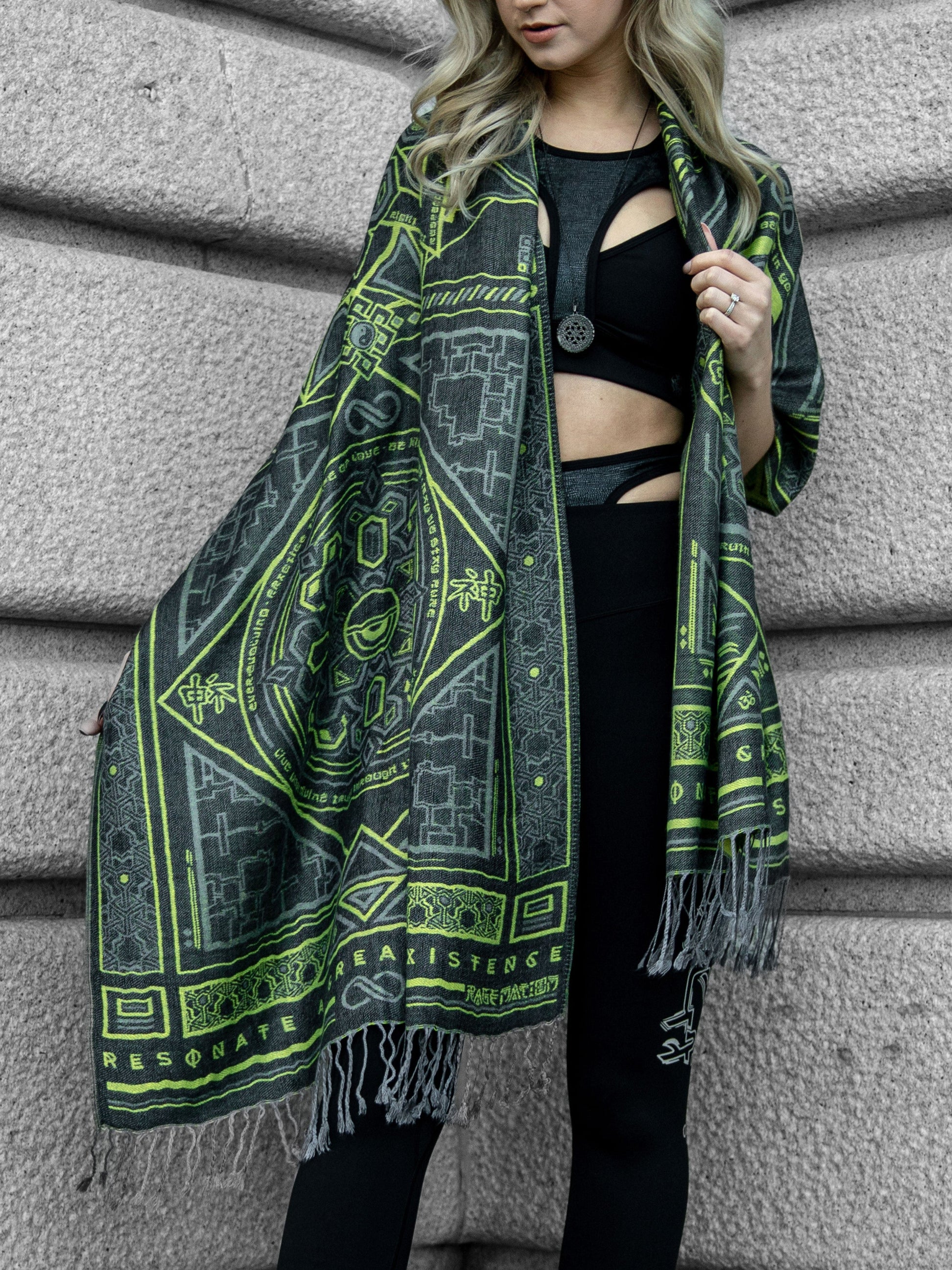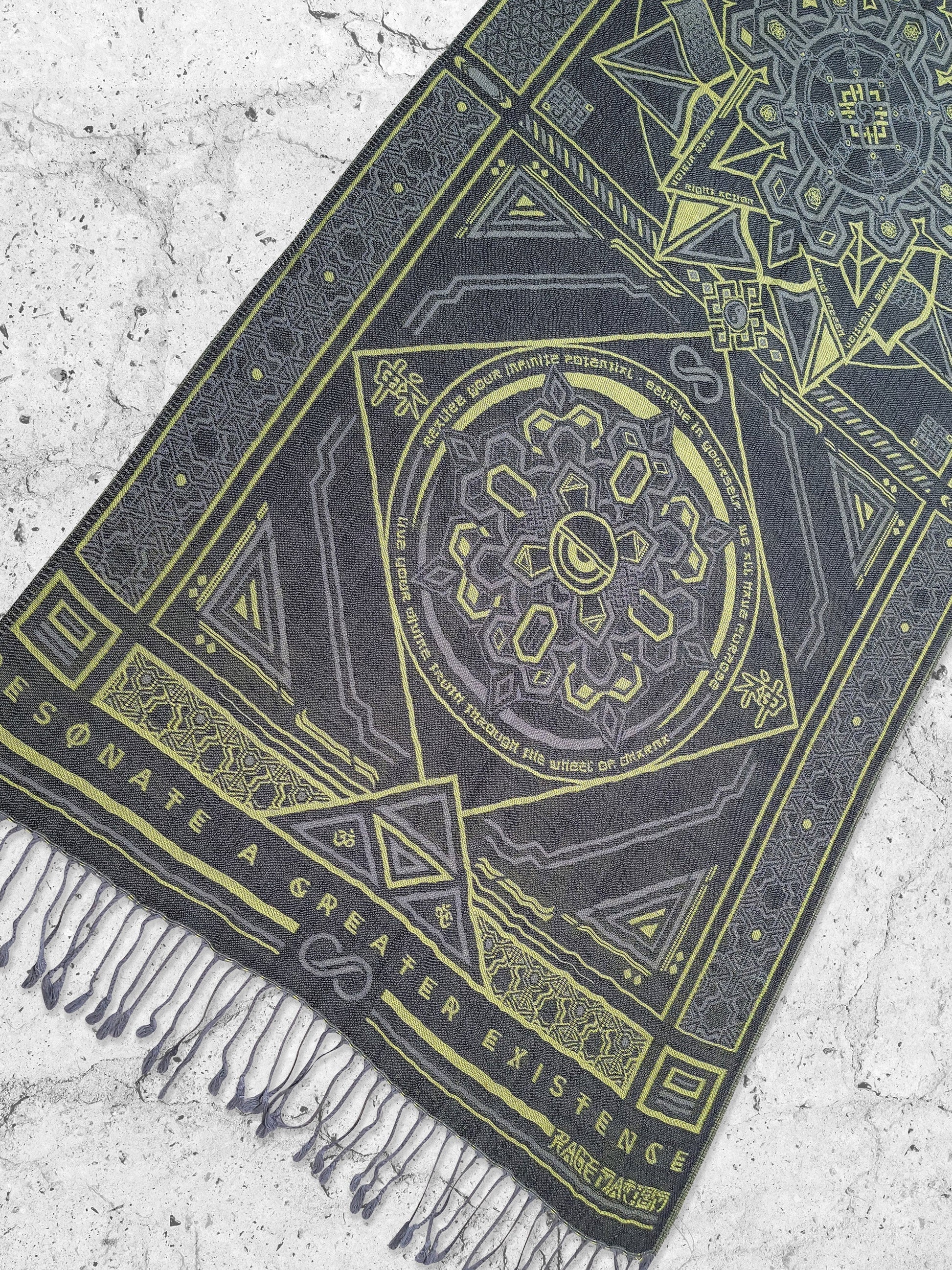 DHARMA V2 • Grey / Neon Yellow • UV REACTIVE • Festival Shawl/Scarf