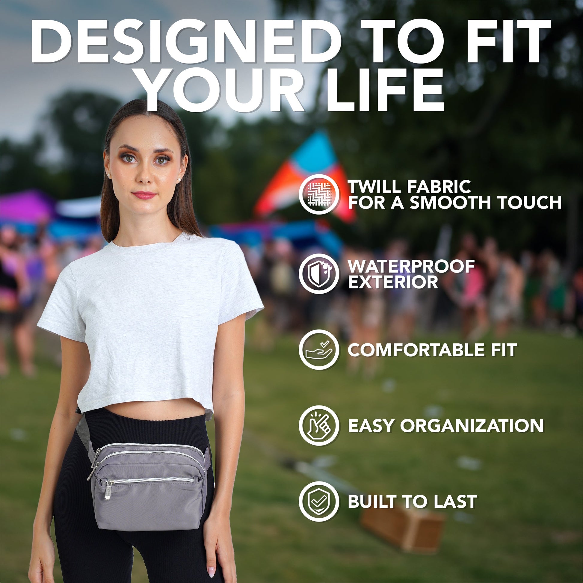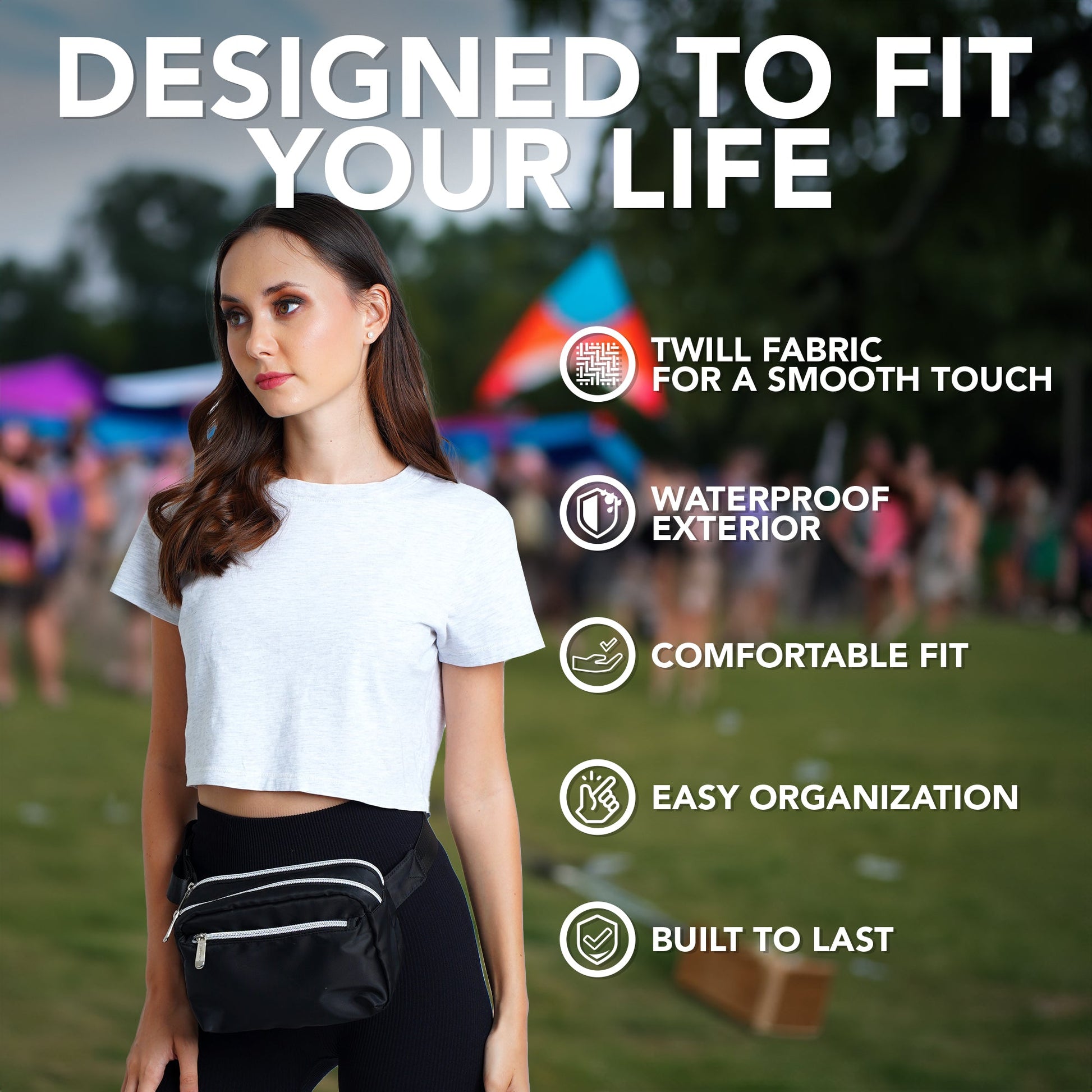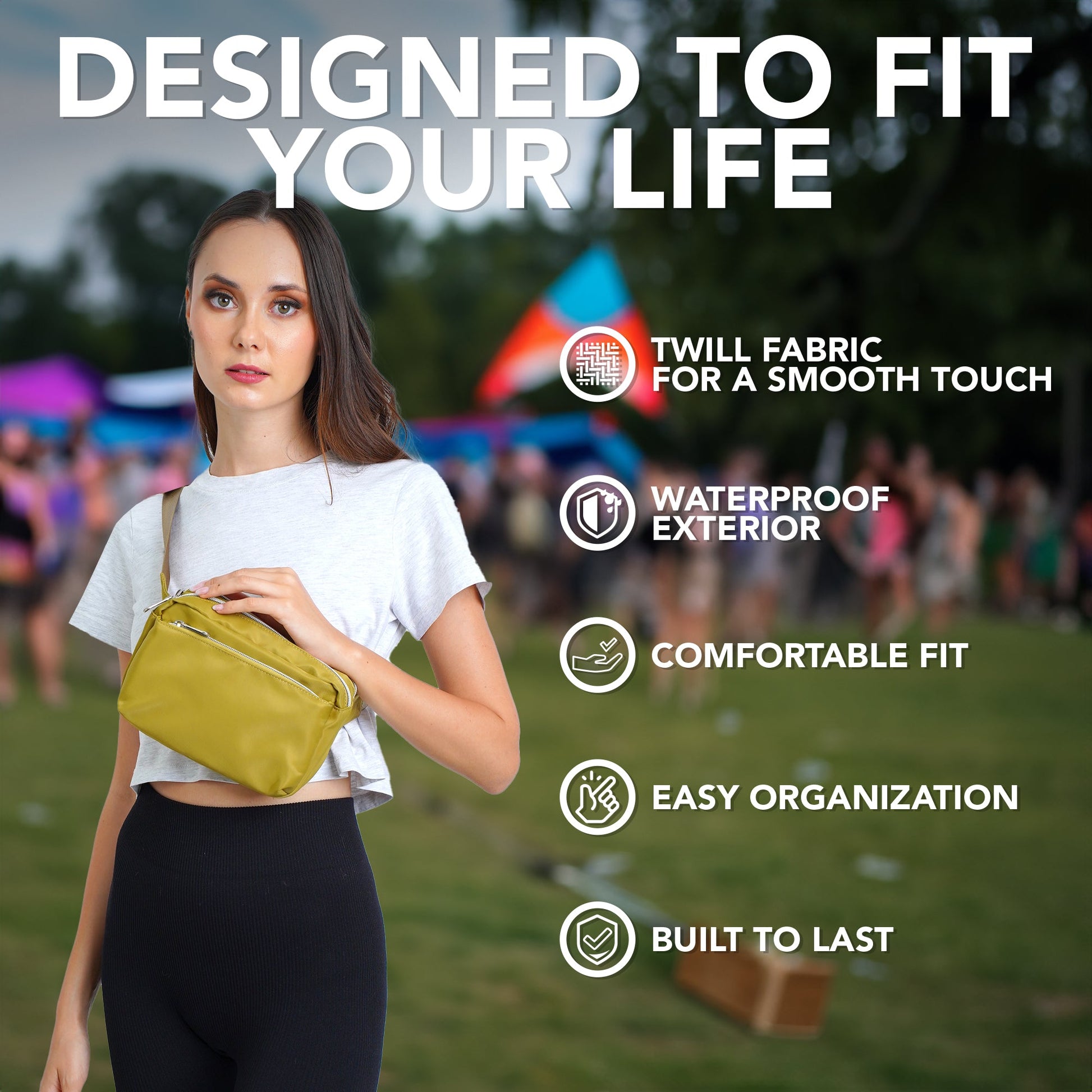 - DURABLE CONSTRUCTION - Our fanny pack crossbody bags for women is made from a durable water resistant twill fabric with enhanced stitching, adjustable belt and premium zippers to last the test of time