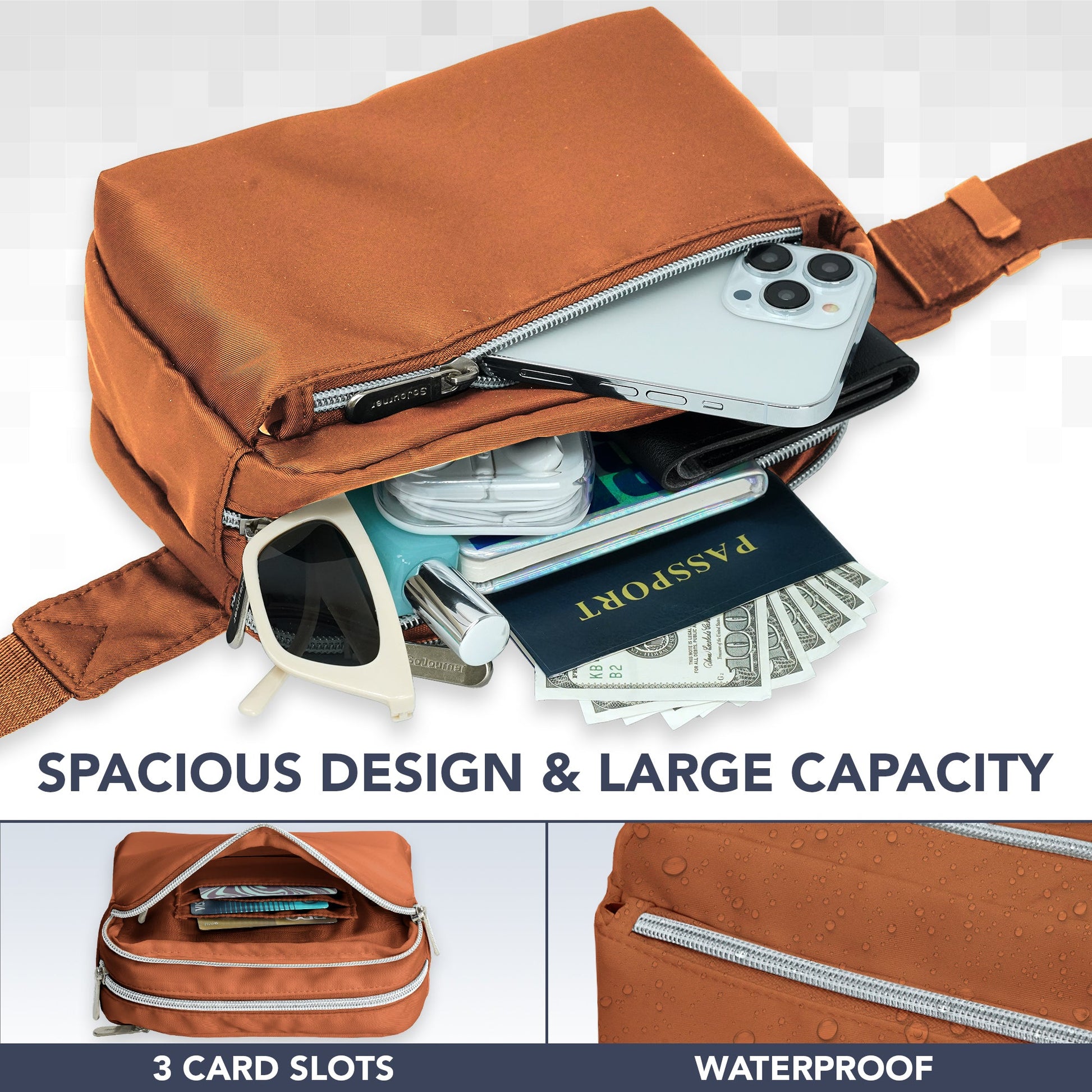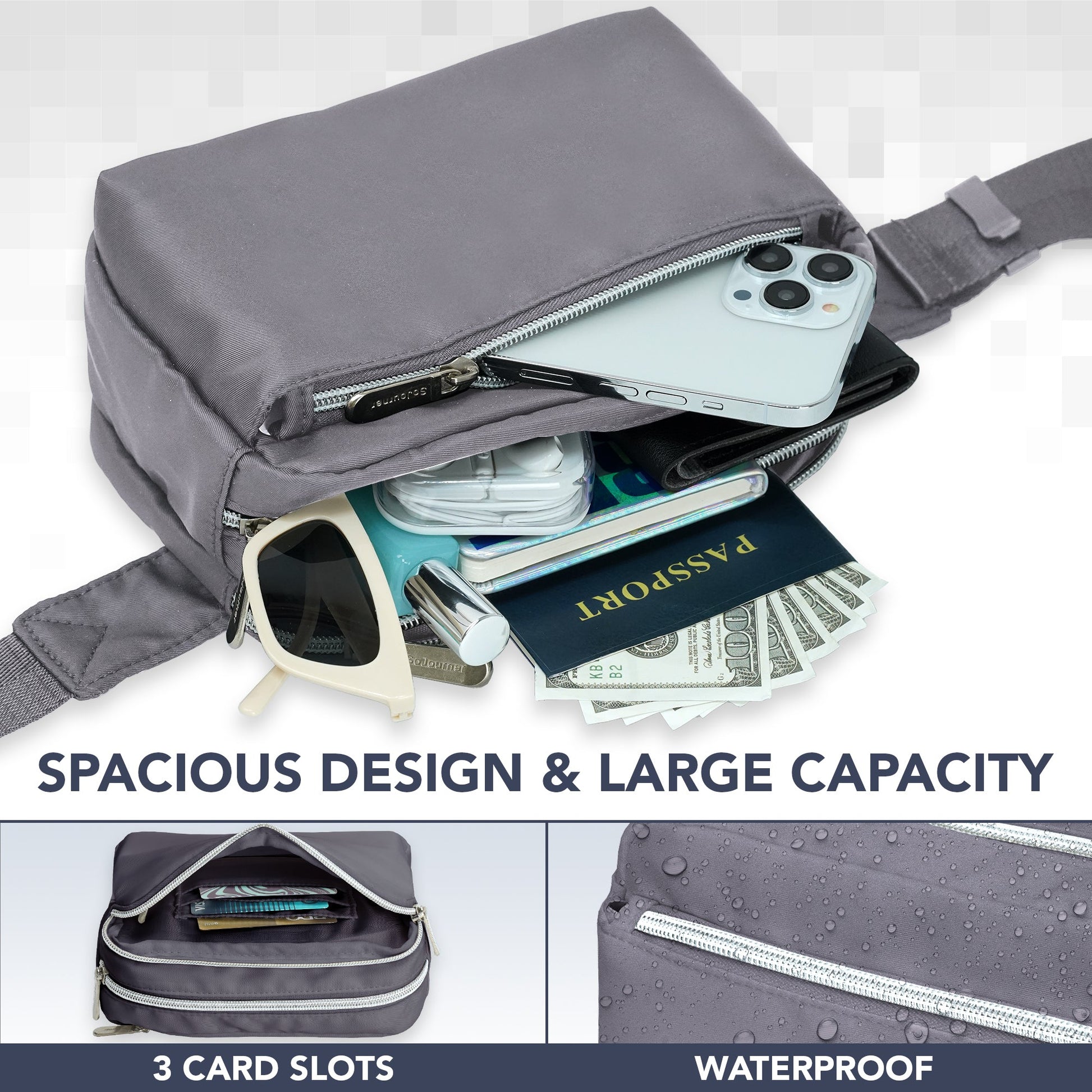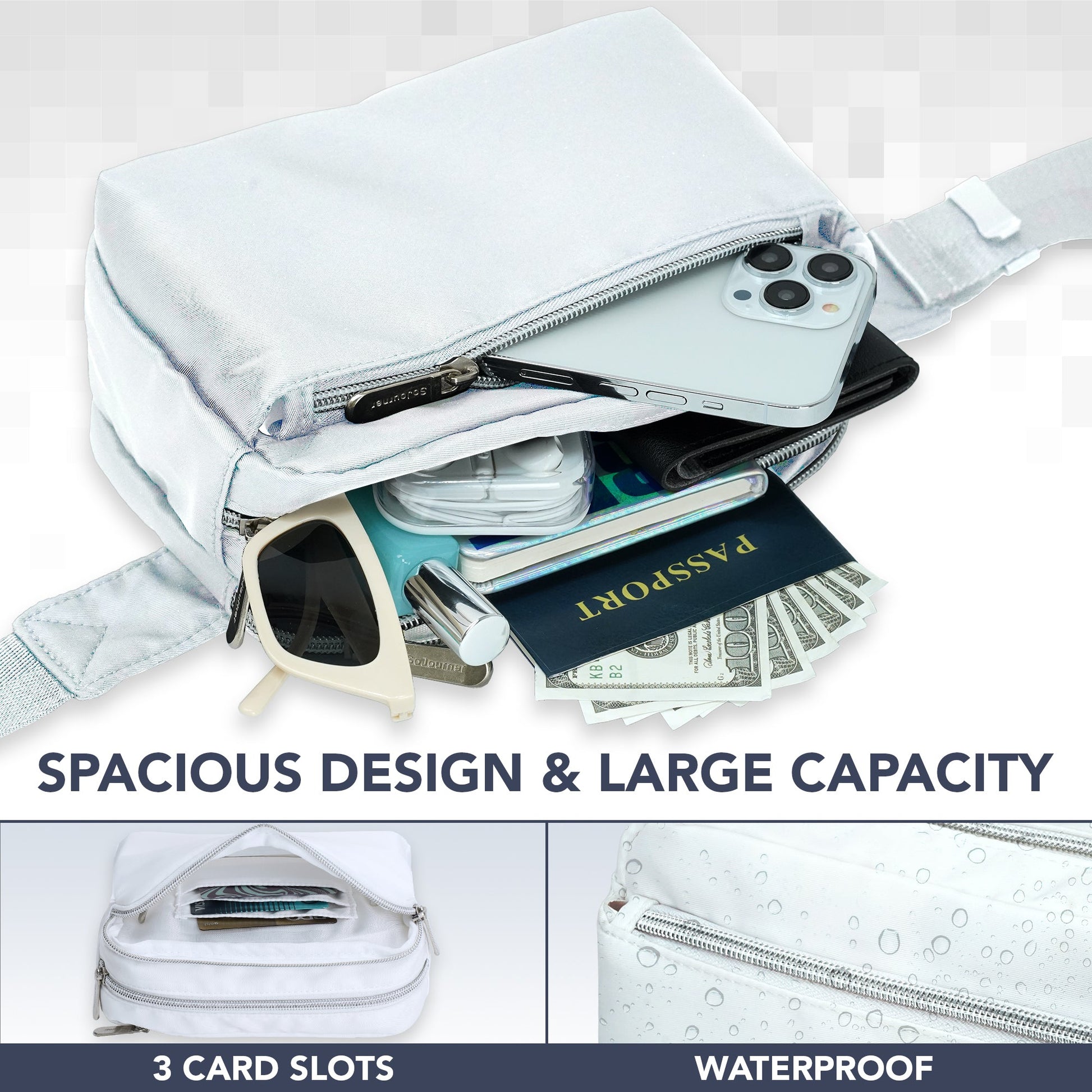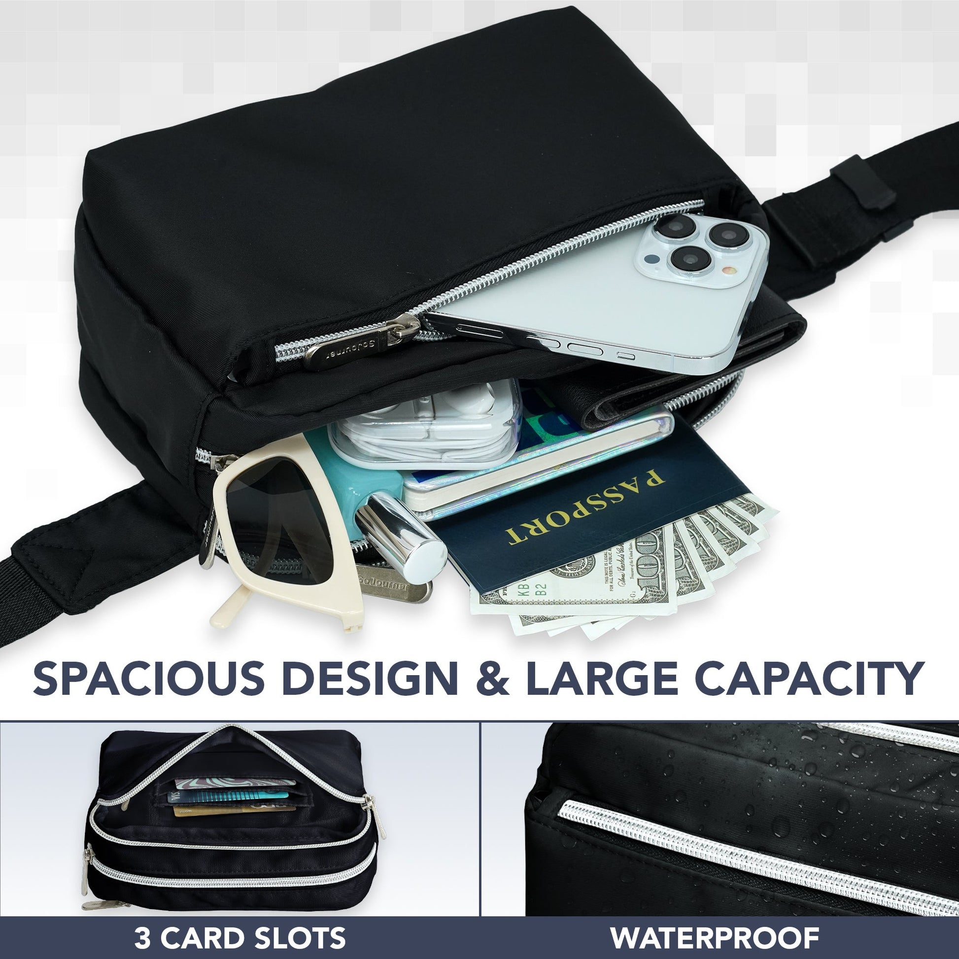 - DURABLE CONSTRUCTION - Our fanny pack crossbody bags for women is made from a durable water resistant twill fabric with enhanced stitching, adjustable belt and premium zippers to last the test of time