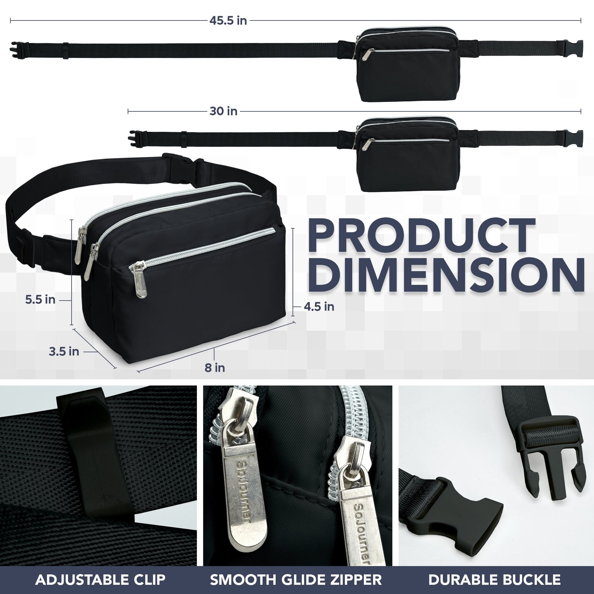 - FASHION-FORWARD AND FUNCTIONAL: Elevate your outfit with our black fanny pack crossbody bags for women. The sleek design adds a touch of sophistication to any look, while the adjustable strap offers a customizable fit.