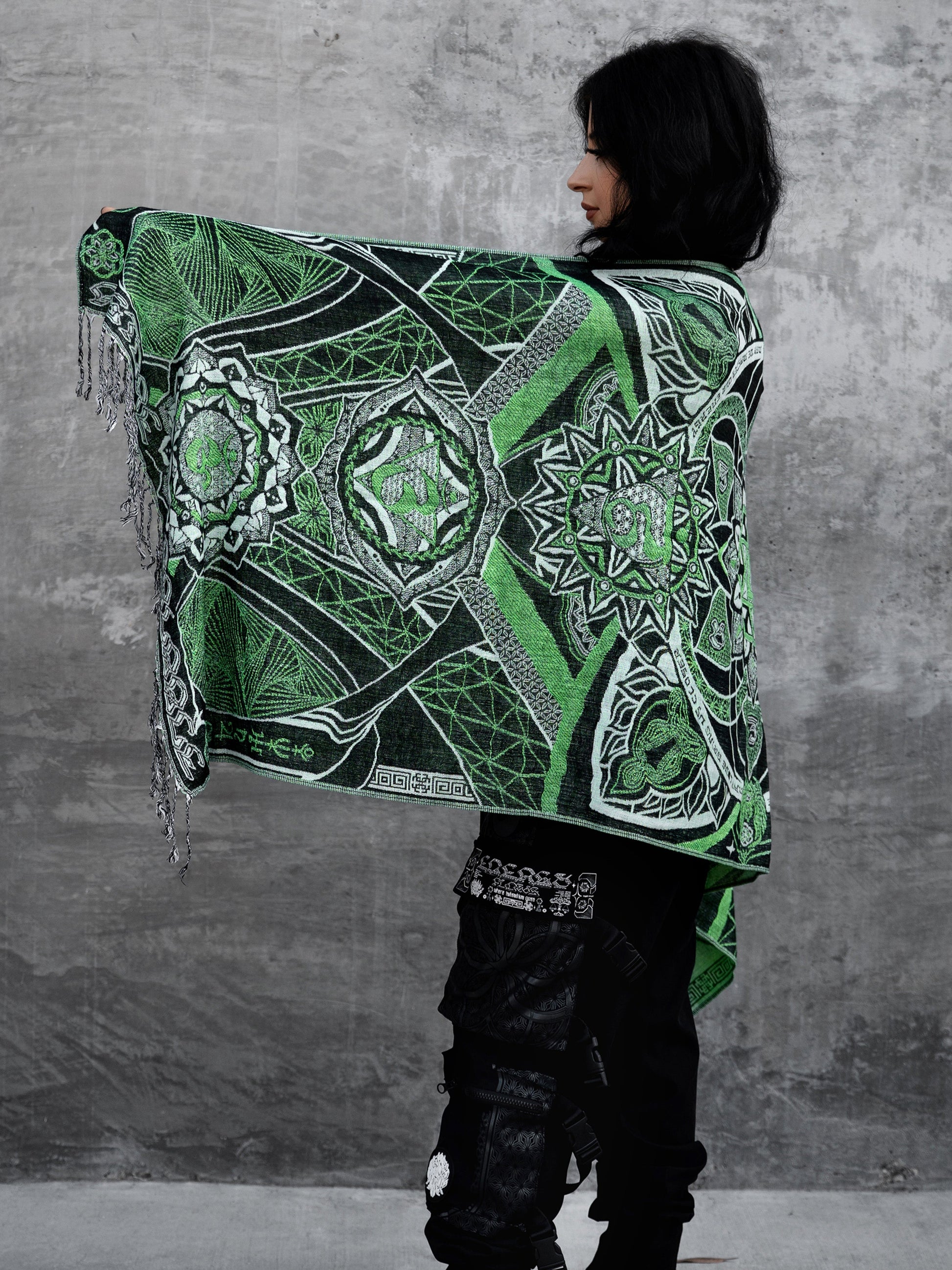 NEW RELEASE • HARMONY HEALS • UV-REACTIVE GREEN MINT • Festival Shawl/Scarf