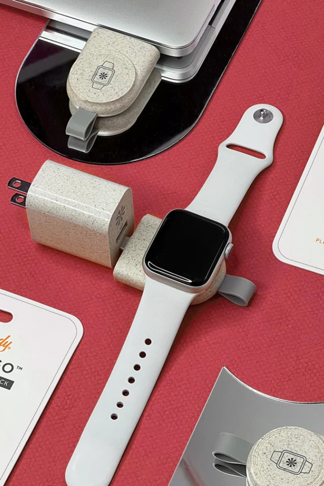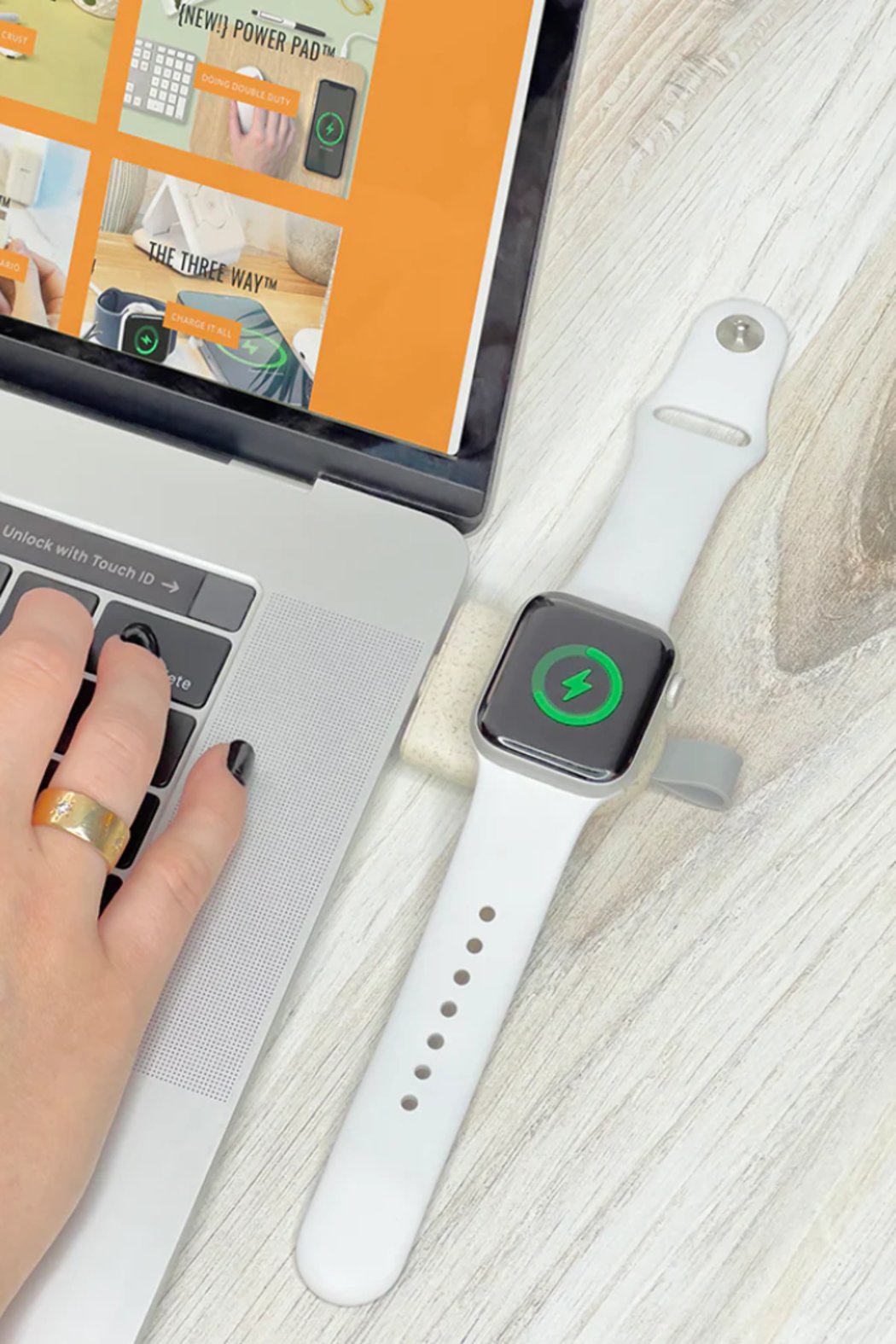 This portable charging dock is a strong magnetic wireless charger compatible with all Apple Watches.